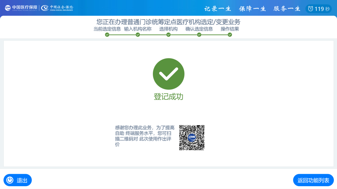 扫描现场张贴的“机构选定码”选定/变更为当前所在的医疗机构,