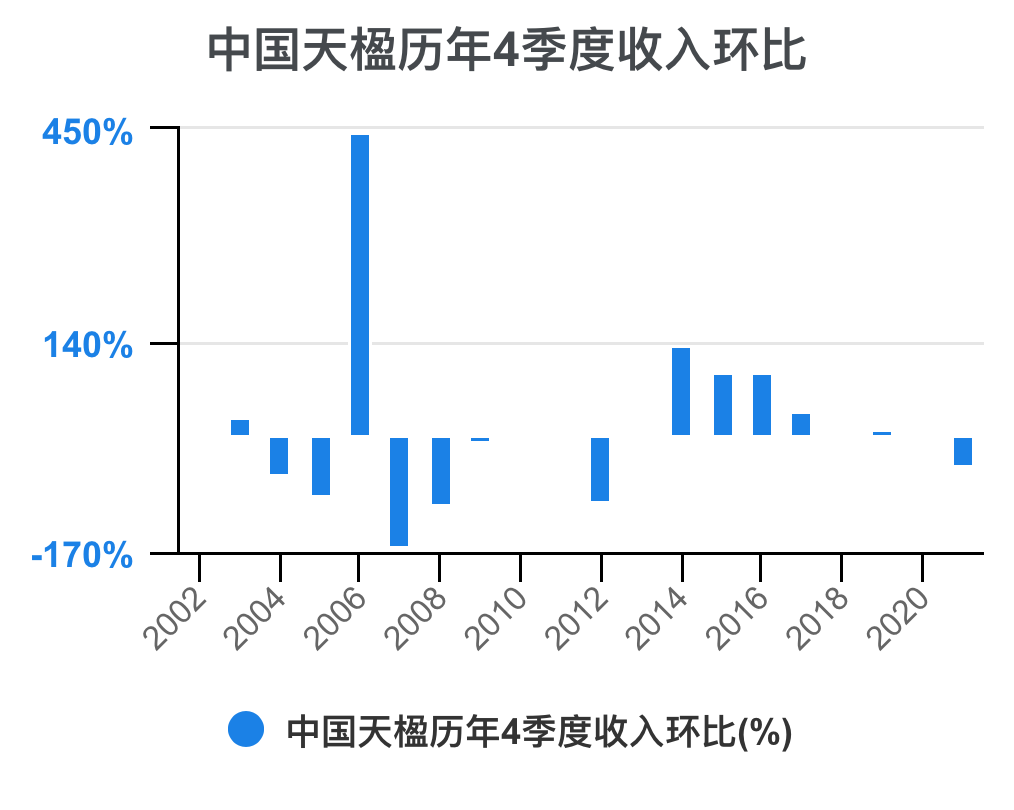 中国天楹历年4季度收入环比,2022期数据为109%。