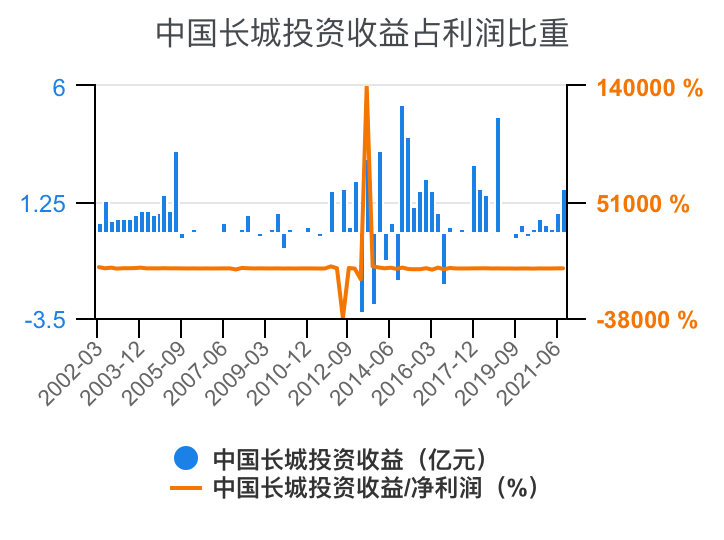 中国长城投资收益,2022-03期数据为0.59亿元。中国长城投资收益/净利润,2022-03期数据为-50.7%。