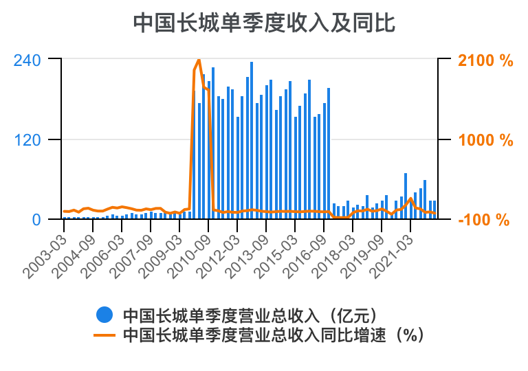 中国长城年收入,2022-03期数据为175亿元。中国长城收入增速,2022-03期数据为6.44%。