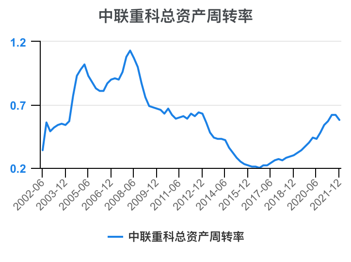中联重科总资产周转率,2022-03期数据为0.51 。
