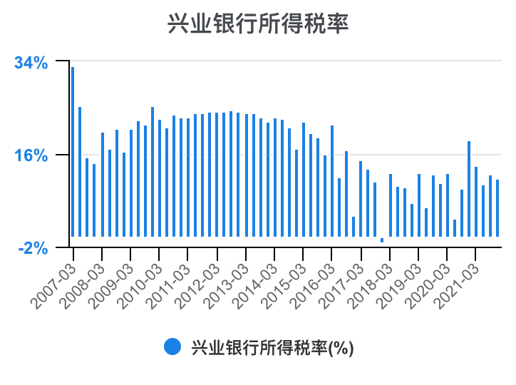 兴业银行纳税额/收入,2022-03期数据为17.3%。