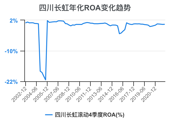 四川长虹滚动4季度ROA,2022-03期数据为0.4%。