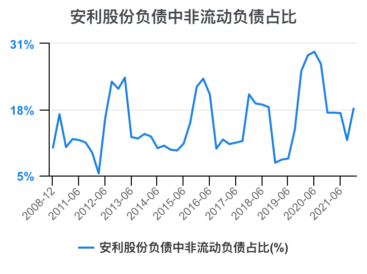 安利股份负债中非流动负债占比,2022-09期数据为19.6%。