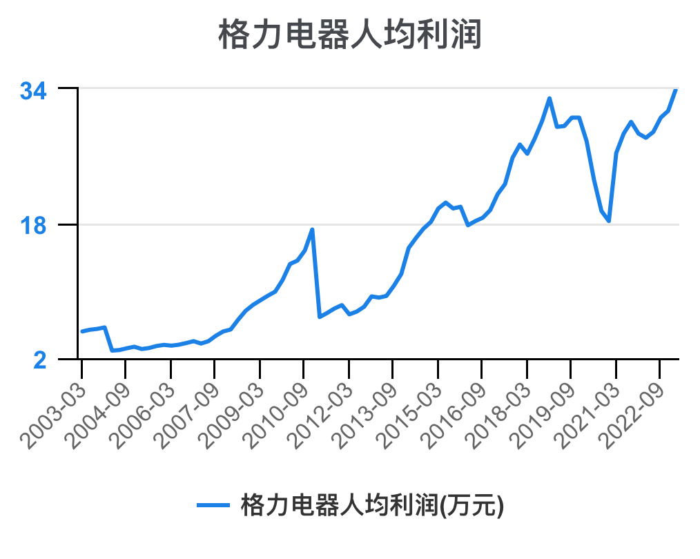 格力电器人均薪酬,2023-03期数据为15.4万元。