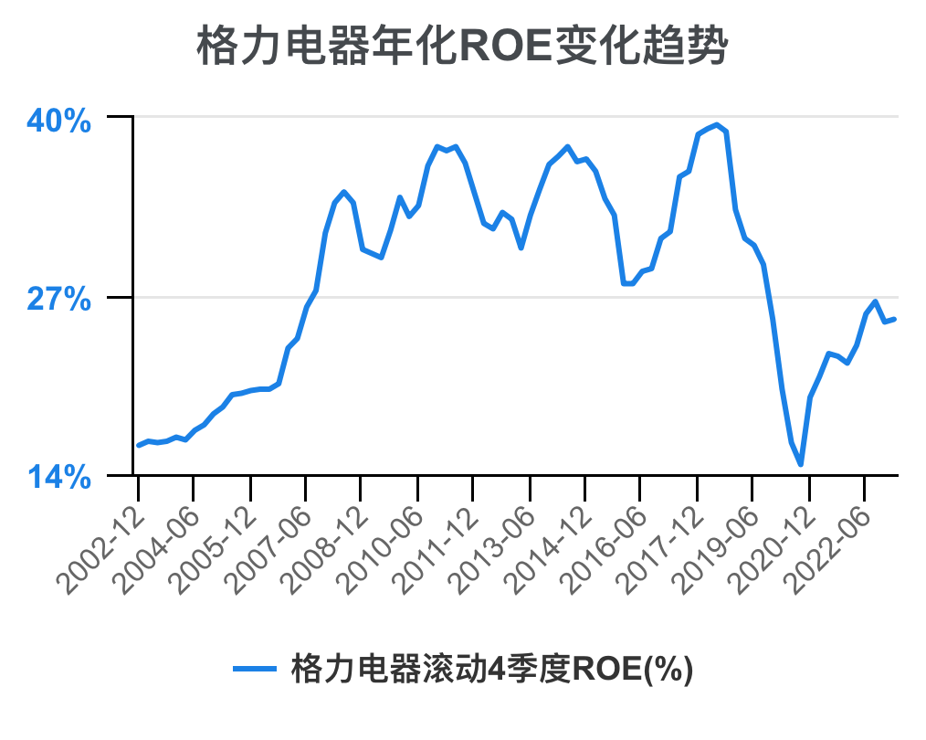 格力电器滚动4季度ROE,2023-03期数据为25.3%。