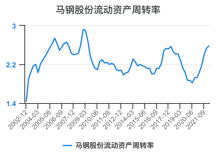 马钢股份流动资产周转率,2022-03期数据为2.58 。