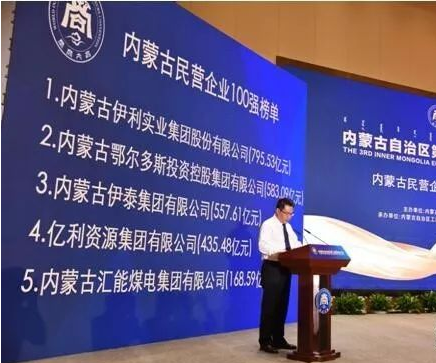 9月18日下午,在内蒙古自治区第三届蒙商大会上,发布了“2019内蒙古民营企业100强”名单,内蒙古伊利实业集团股份有限公司以795.53亿元位居榜首。