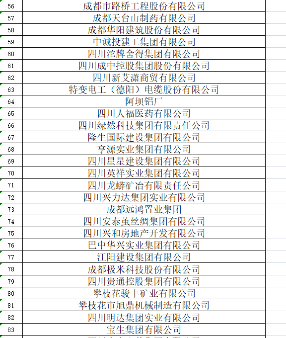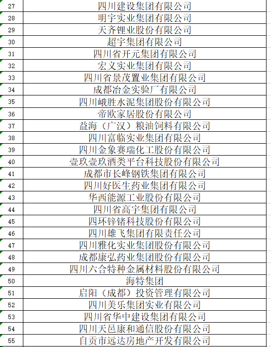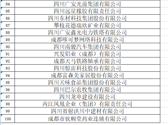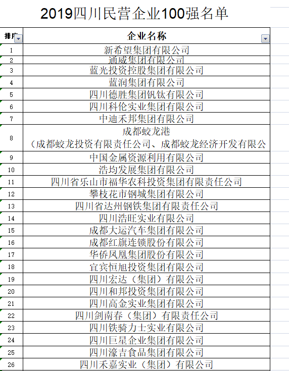 9月4日上午,四川工商联重磅发布了“2019四川民营企业100强”榜单。新希望、通威、蓝光、蓝润、德胜、科伦、中迪禾邦、蛟龙港、中国金属资源、浩均发展分列前十位。