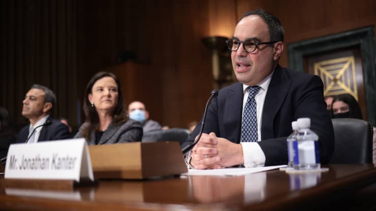 2021年10月6日,坎特在华盛顿的参议院司法委员会作证。图自CNBC