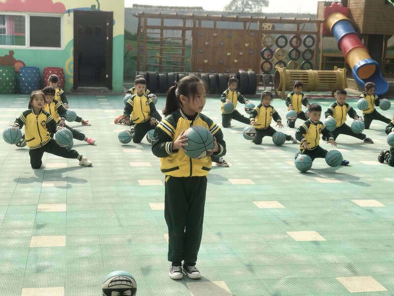 左右手交换拍球、变换整齐的队形、特色篮球融合活动……操场上,进行体育活动的幼儿们个个精神倍增,情绪高涨。
