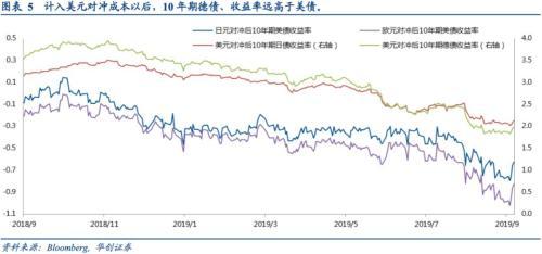 反过来看美国投资者到海外买日本和德国的10年期国债就是正收益(美元对冲后分别是121个基点、197个基点),