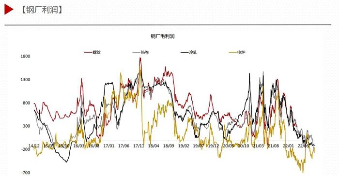 2014年-2022年钢厂毛利润变化 数据来源:一德期货