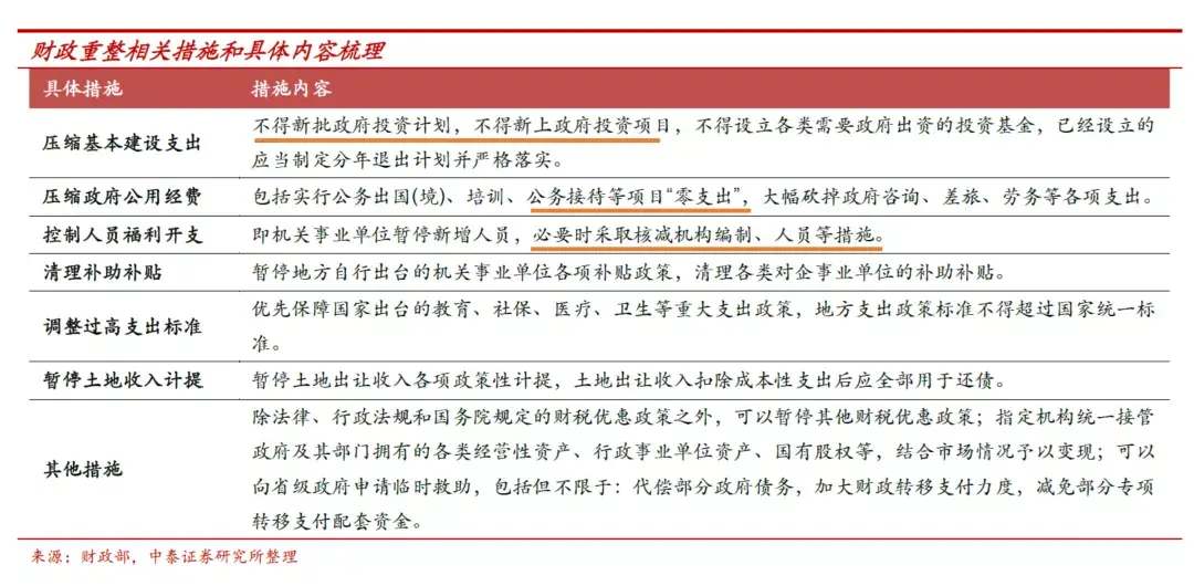 所谓财政重整,指的是在债务高风险地区,在保障基础民生支出的基础上,通过开源、节流、处置政府资产等方式重新实现财政平衡。