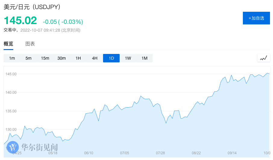 日元兑美元再度走弱,多次跌破145的关键点位,接近日本政府上次干预的水平