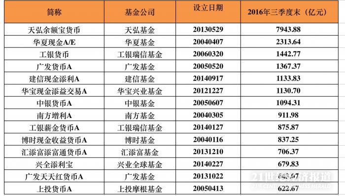 以下是三季末市场上规模在600亿以上的货币基金,华夏旗下只有华夏现金一只基金在内。