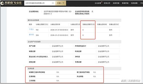 北京中科瑞彤有限公司实缴出资额与社保信息均为“0”