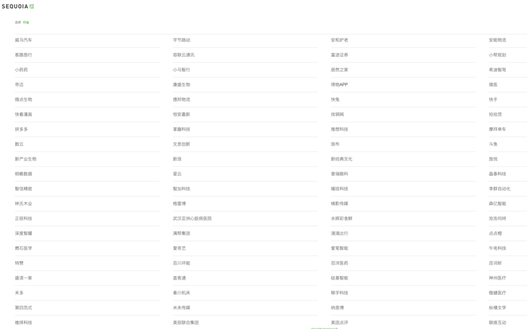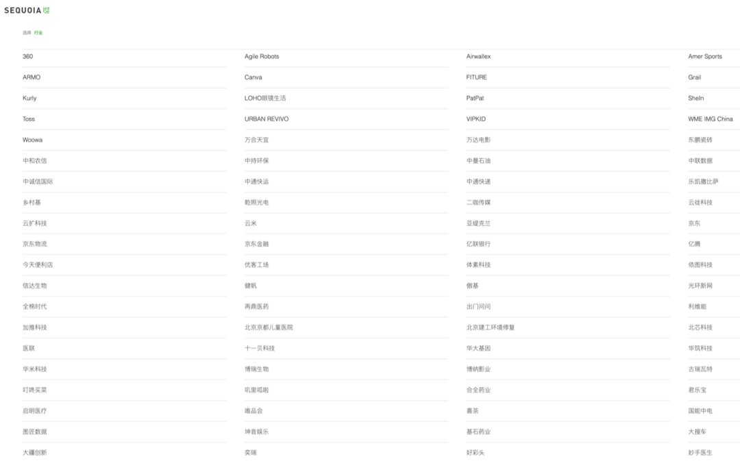 以下是红杉中国官网上展示的被投项目(点击放大查看):