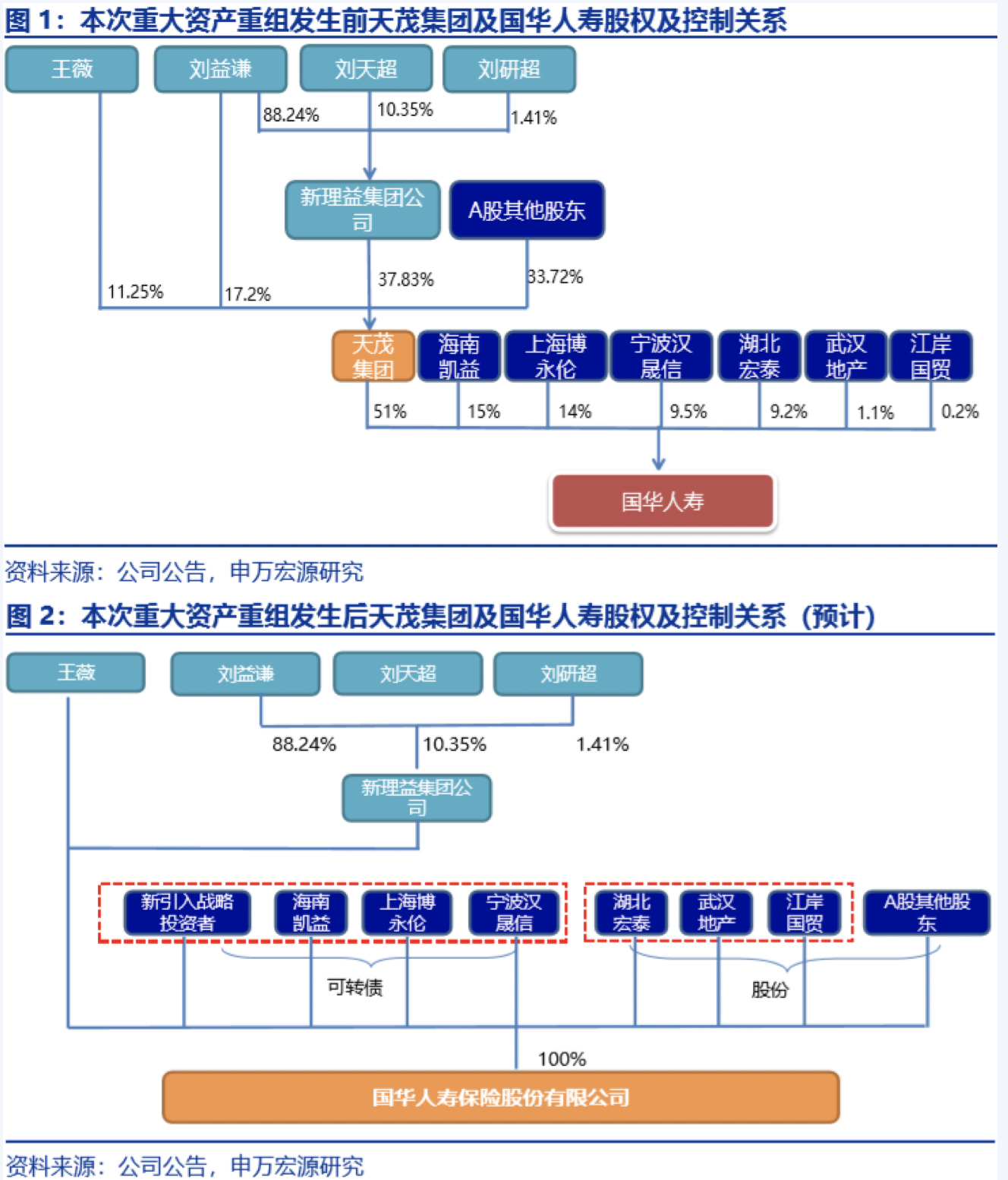 申万宏源研究报告指出,天茂集团的本次吸收合并,本质是作为上市公司购买国华人寿的少数股东权益,以实现国华人寿整体上市。天茂集团在公告中称,并购的目的是进行横向整合。