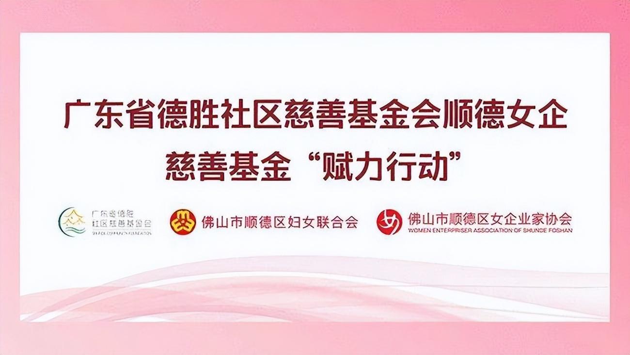 2021年6月,在顺德区妇女联合会的倡导和推动下,顺德区女企业家协会、广东省德胜社区慈善基金会联合设立“广东省德胜社区慈善基金会顺德女企慈善基金”(简称:德胜女企基金)。德胜女企基金开展“赋力行动”,致力为顺德区丧偶、离异等特殊困境妇女及家庭赋能助力,帮助其解决困难和问题,助力顺德社会和谐发展。