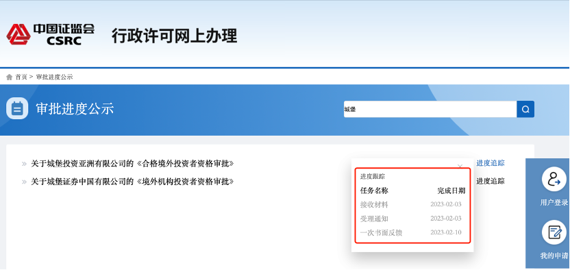 今年2月9日,证监会也发布了包括城堡证券中国等五家公司合格境外投资者资格的批复,核准了其合格境外投资者的资格。