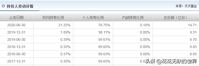 到2020年6月30日,机构持比达到了21.25%,前所未有的增加。