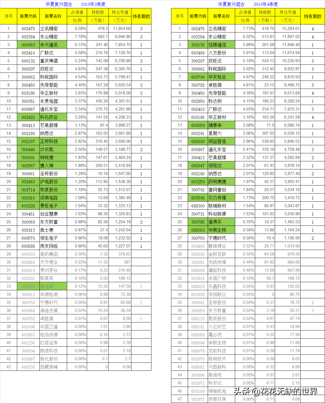 2019年二季度持仓开始:对一季度前十持仓50%+的股票做了调整