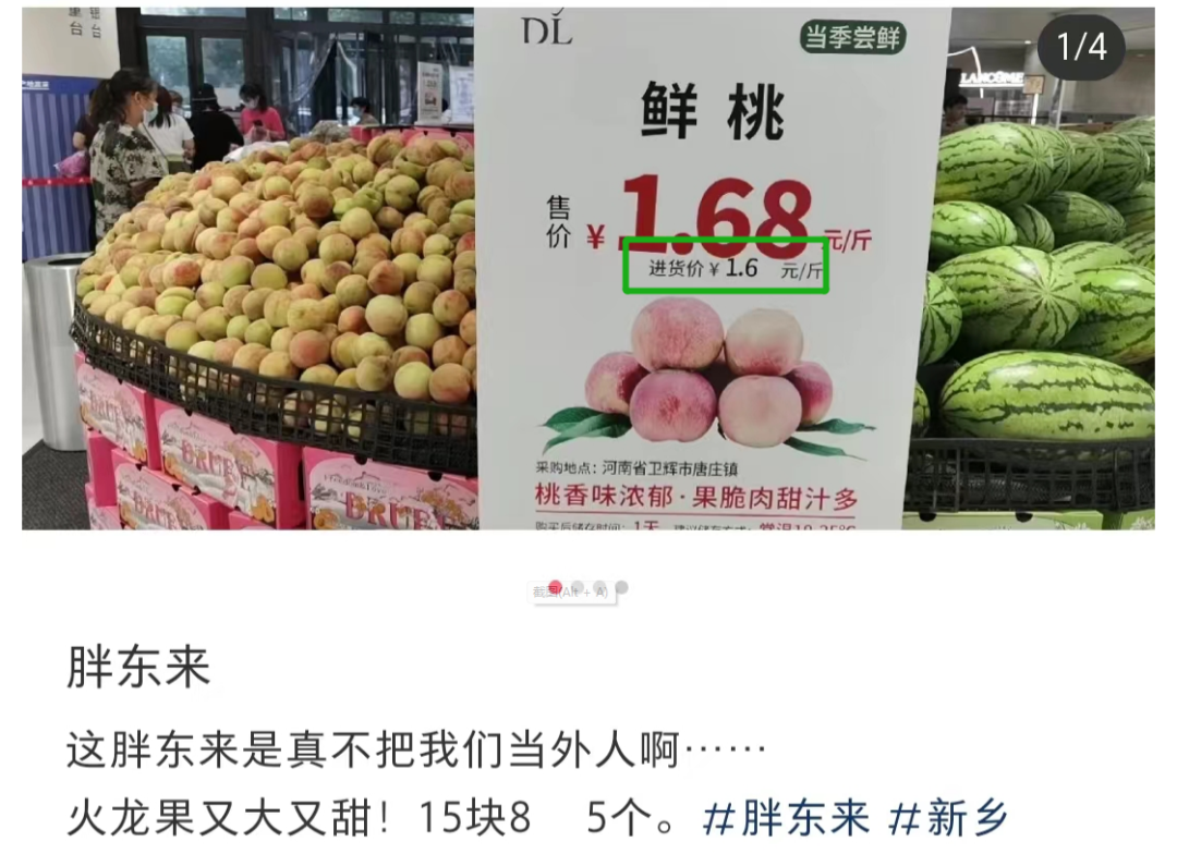 不仅是生鲜食品类,胖东来货架上的全部货品,无一例外,全部标明进货价,让你心甘情愿给利润买单。