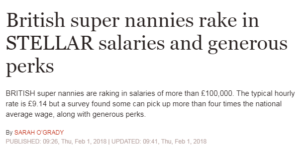 据Express, 英国的“超级保姆”非常抢手,年薪超过10万英镑,时薪通常是9.14镑,但有调查显示,一些“超级保姆”的时薪是全英平均时薪的4倍以上,且享受大量附加福利。