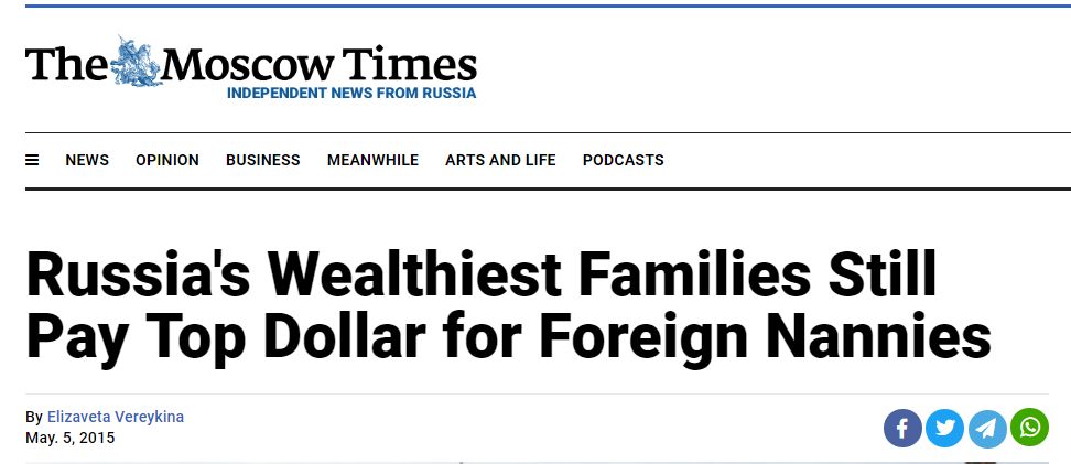 俄罗斯的超级富豪也对双语保姆青睐有加,同样以高薪条件抢夺双语保姆资源,加入全球“采购”行列。