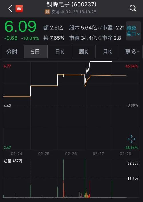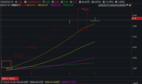 从盘面上看,截至2月27日,铜峰电子从2月19日开启涨停之旅以来,连续7天涨停,累计涨幅95.1%。
