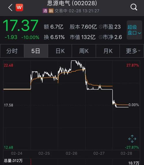 然而,在详细披露上述信息后,思源电气股价即刻“见光死”,2月27日公司股价直奔跌停。今天早盘,该股即封上跌停板。