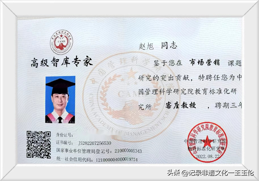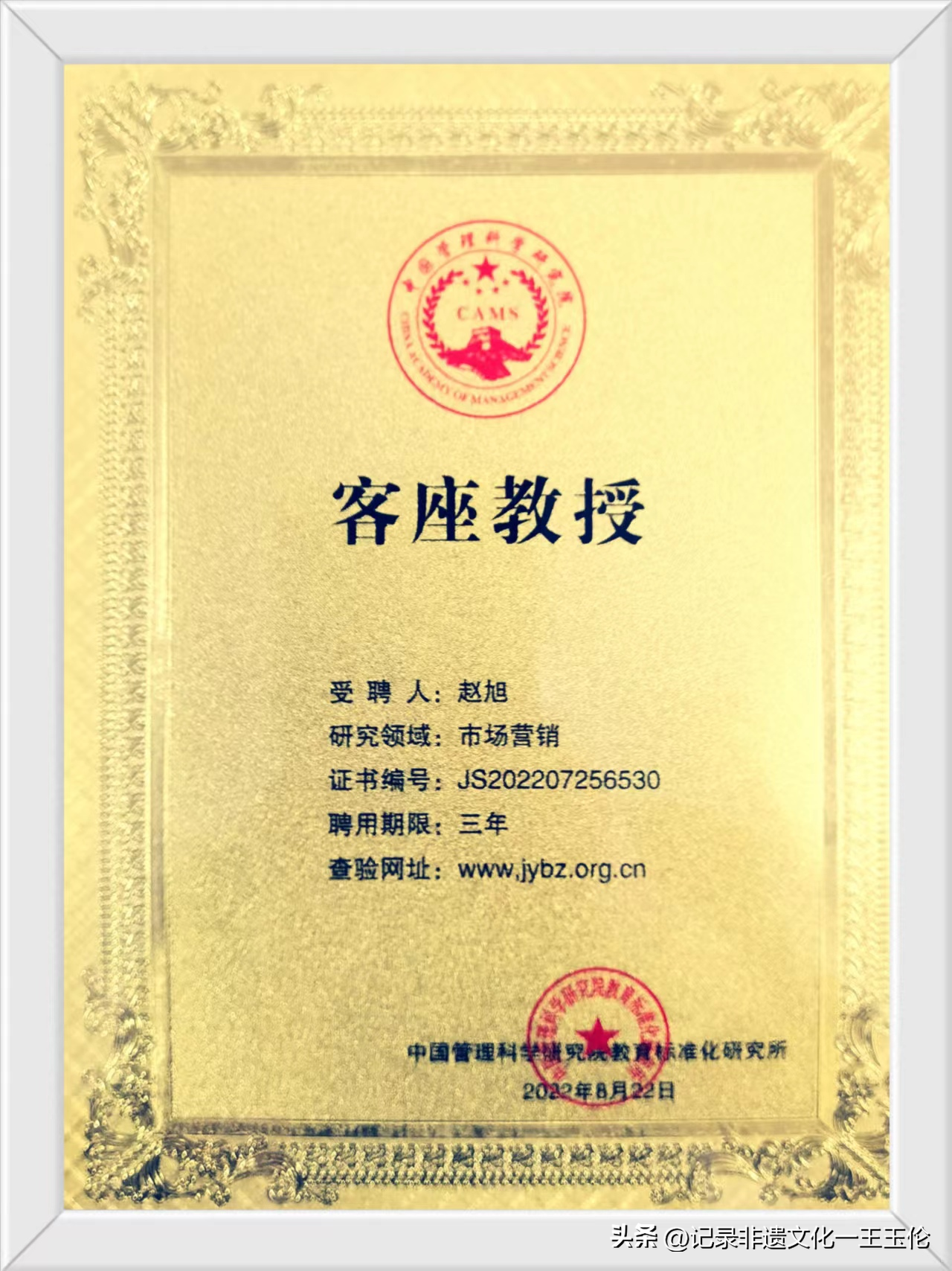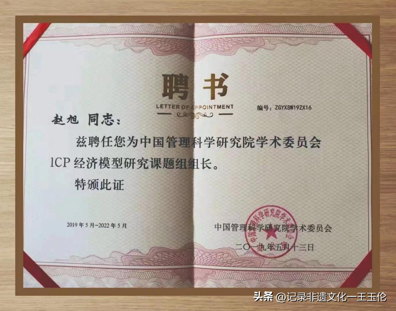 中国记录通讯社(记者 王玉伦)北京消息:近日,国内著名网络营销实战专家,ICP经济模型发明人,在文化艺术界和国际金融界素有“跨界奇才”之称的赵旭(注册商标:老狼赵旭)因在“市场营销”课题研究的突出贡献,被中国管理科学研究院教育标准化研究所授予“客座教授”和“高级智库专家”称号。这是继2019年5月赵旭被中管院学术委评为第十届全国管理创新大会“建国70周年管理创新卓越领军人才”、受聘中管院学术委ICP经济模型研究中心主任、课题组组长后的又一殊荣。