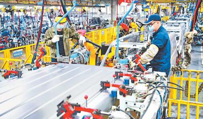 江西省赣州经开区金融部门推动产融对接常态化,帮助企业解决资金需求。图为日前在位于赣州经开区的山东凯马汽车制造有限公司赣州分公司生产车间里,工人正忙着加工新能源商用车的车厢架。 朱海鹏摄(人民视觉)